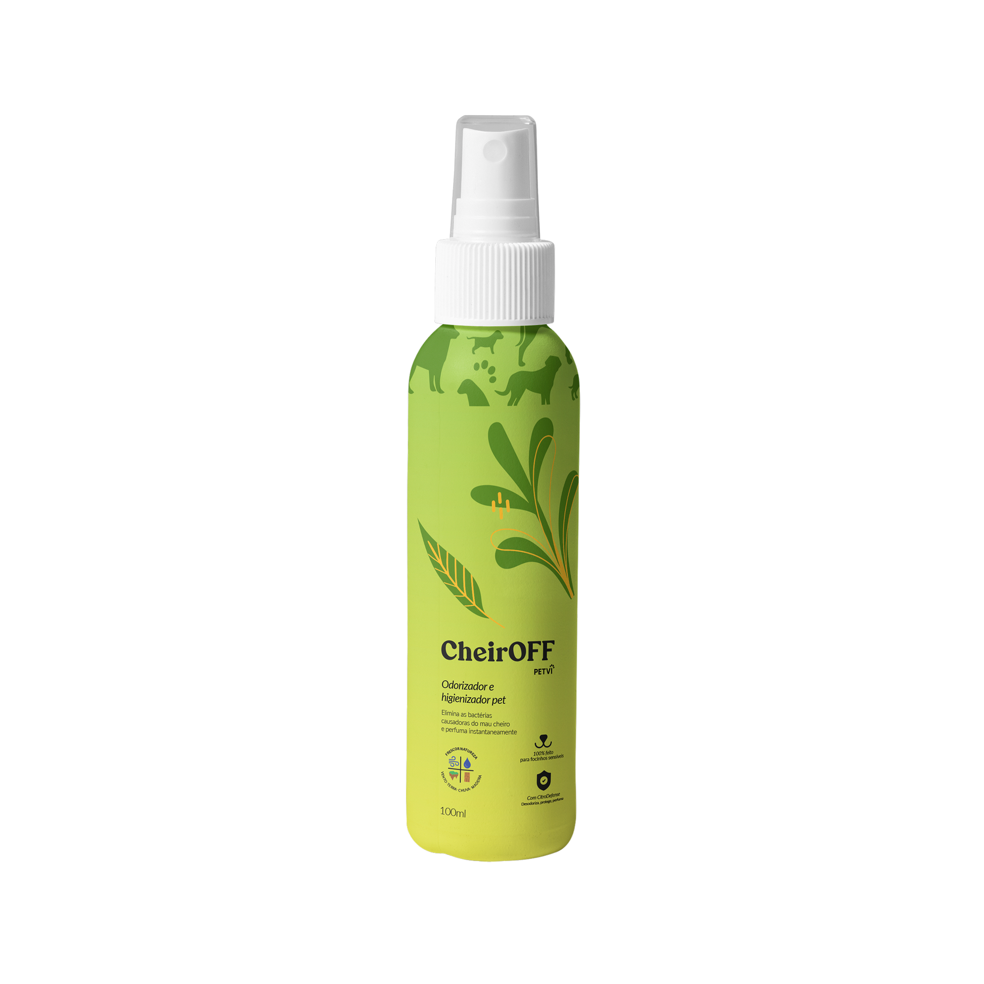 O Cheiroff é um eliminador de odores com efeito quádruplo: limpa, evita a proliferação de micro-organismos, perfuma e elimina os maus odores causados por urina e fezes de animais de estimação. É perfeito para manter os ambientes onde os pets vivem sempre frescos e agradáveis.