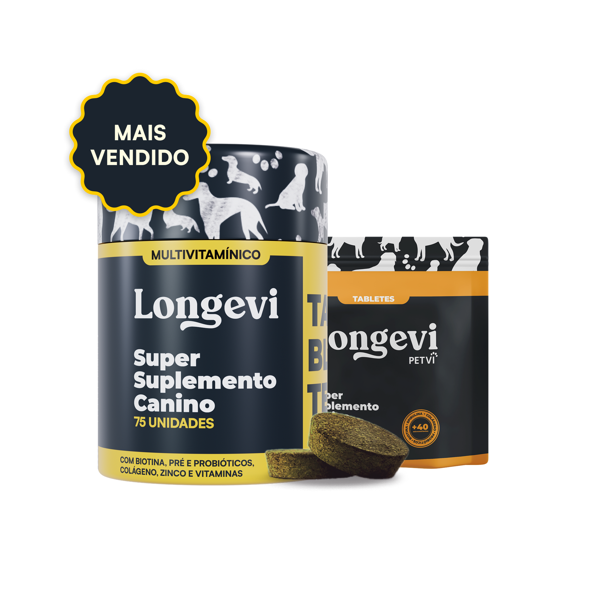 Longevi é um super suplemento em formato de tablete. Cada dose de Longevi é formada de vitaminas, minerais, probióticos e prebióticos. O segredo está na junção dos ingredientes mais puros e cientificamente validados para ajudarem na saúde canina.